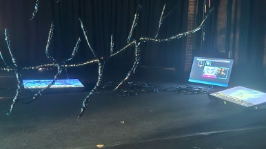 미디어아트 작품이지만 오브제와 카메라, 조명 등의 오브제를 활용한 미디어아트 작품이었습니다